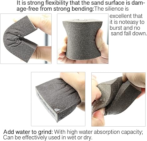 【Kullanımı Kolay】Yüksek yoğunluklu sünger iyi elastikiyete sahiptir, yüzey büküldüğünde kırılmaz, suyu tamamen emer ve sürtünme ısısını azaltır, parlatma ve taşlama için çok iyi, temizlemesi kolaydır ve geri dönüştürülebilir.