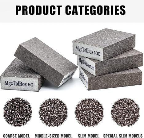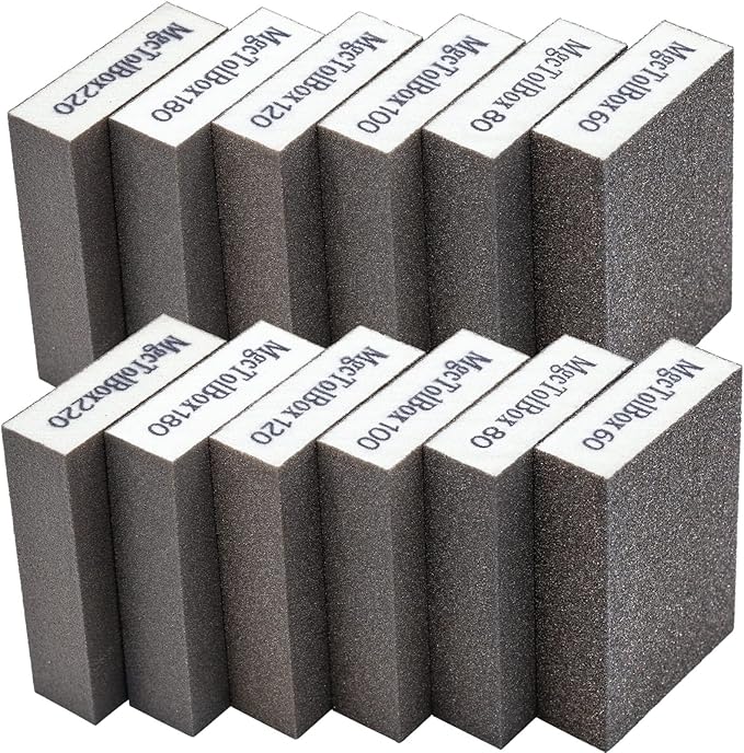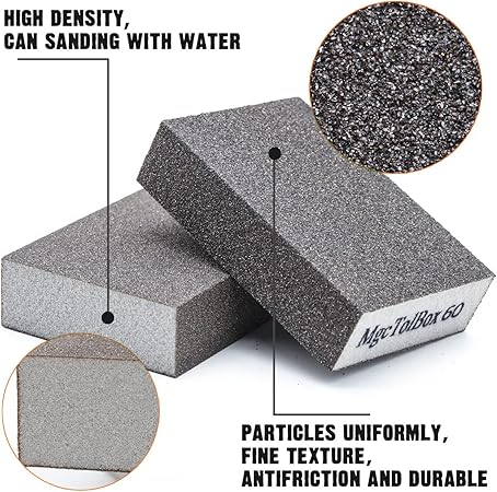 【Uygulama】Zımpara bloğu ahşap mobilyaları parlatmak, metal yeşim parlatmak için sünger ahşabı zımparalamak, paslı bıçaklardan pas çıkarmak, mutfak sobalarını temizlemek vb. için uygundur. Metal, metalik olmayan malzemeler ve plastik gibi çeşitli karmaşık yüzeyler için sünger küçük parçalar halinde kesilebilir. Paket içeriği: 60, 80, 100, 120, 180, 220 her kum için iki adet sünger bloğu, toplam 12 adet zımpara süngeri seti.