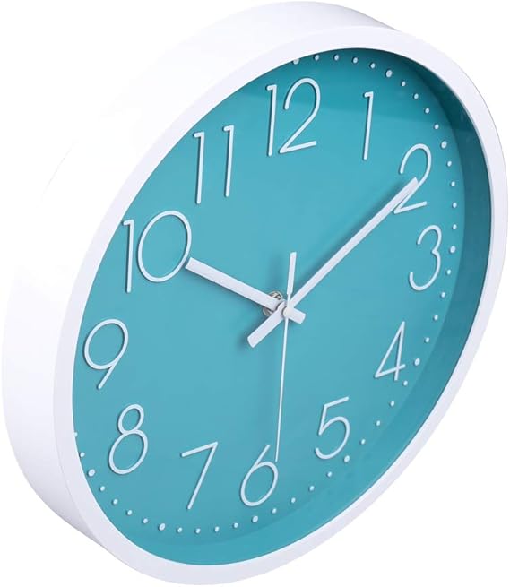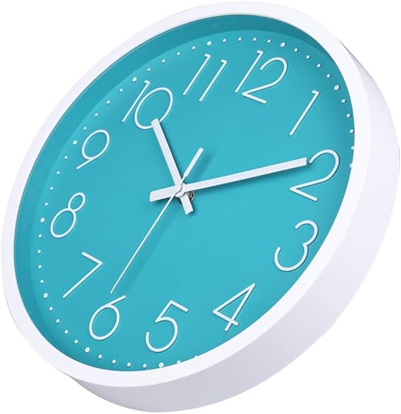 12 inç Sessiz Tik Takmayan Pille Çalışan Yuvarlak Turkuaz Duvar Saati Havuz/Ev/Ofis/Okul/Mutfak/Yatak Odası/Oturma Odası Camgöbeği Saatler için Okunması Kolay