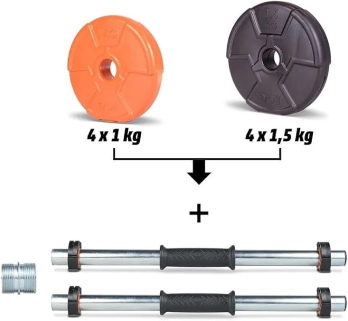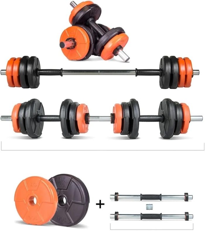 ECGSPOR 12 KG MULTİFONKSİYONEL TURUNCU SİYAH HALTER SETİ ve DAMBIL SETİ İÇERİĞİ;