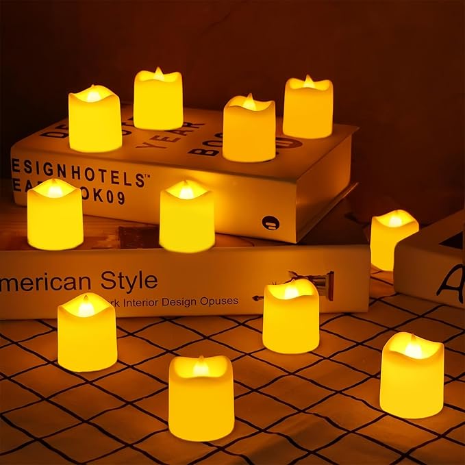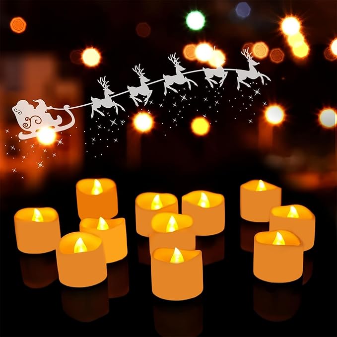 【 12 LED alevsiz mum】 – Yüksek kaliteli pille çalışan alevsiz LED çaydanlık mumu. Gerçek bir mumun hissini ve görünümünü taklit etmek için yüksek kaliteli malzemeler kullanılır. Gerçek mumlar gibi titrer ve parlar. Sıcak ve romantik.