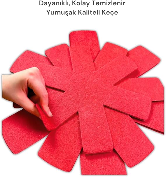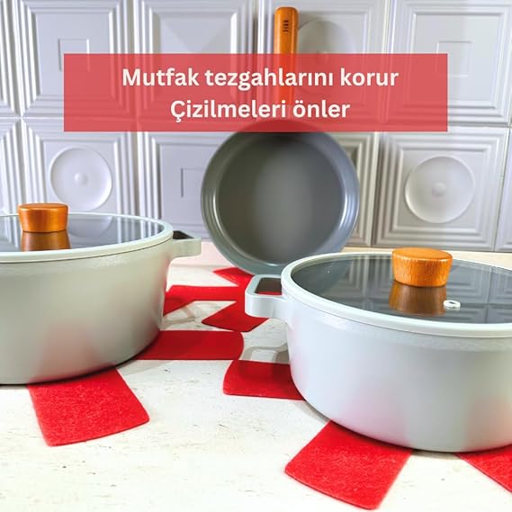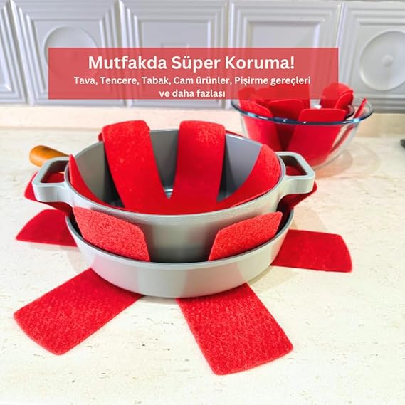 12 Li Set Tencere Tava Koruyucu Borcam Çizdirmez Keçe Düzenleyici (Kırmızı)