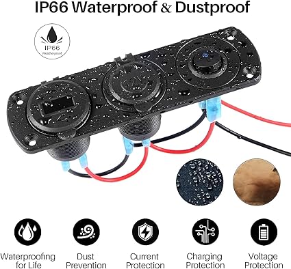 Güç Anahtarı: Güç tasarrufu, cihazları korumak ve cihazların ömrünü uzatmak için bir ON/OFF anahtarı ile tasarlanmış güncellenmiş 12V USB soket paneli. Elektriği korur ve kapatıldığında enerji tüketmez.