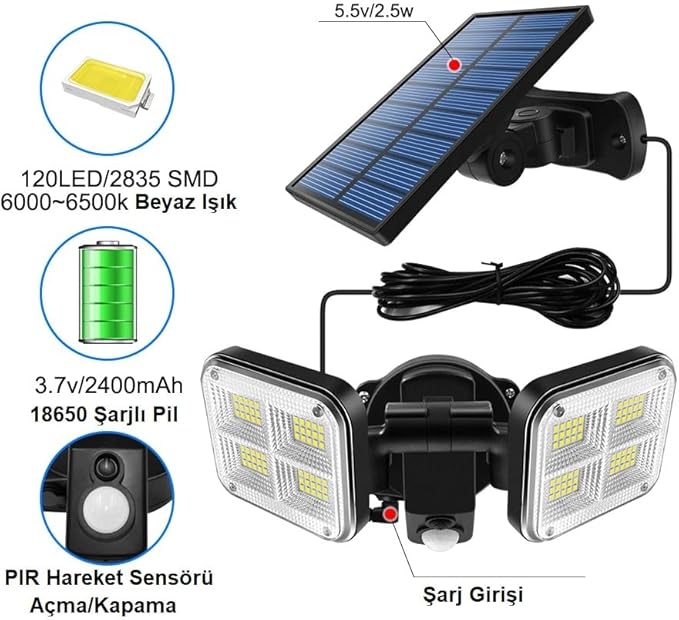 120 LED Solar Lamba 20W Güneş Enerjili AydınlatmaUygunluk: 30 adet stokta