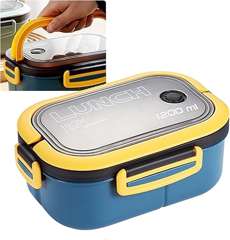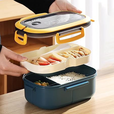 1200 ml 2 Katlı 6 Bölmeli BPA’sız PP Plastik Sefer Tası ve Beslenme Çantası – Hava Kilitli Bento Lunch Box, Çatal ve Kaşık Dahil (Mavi)