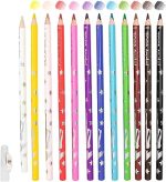 Yüksek renk parlaklığına ve güçlü renk uygulamasına sahip 12 renk, kalemtıraş ve ipuçları ve püf noktaları içeren kitapçık