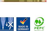 Kırılmaya karşı dayanıklı özel formüle edilmiş grafit uç; tepede yer alan silgi PVC ve latex içermez