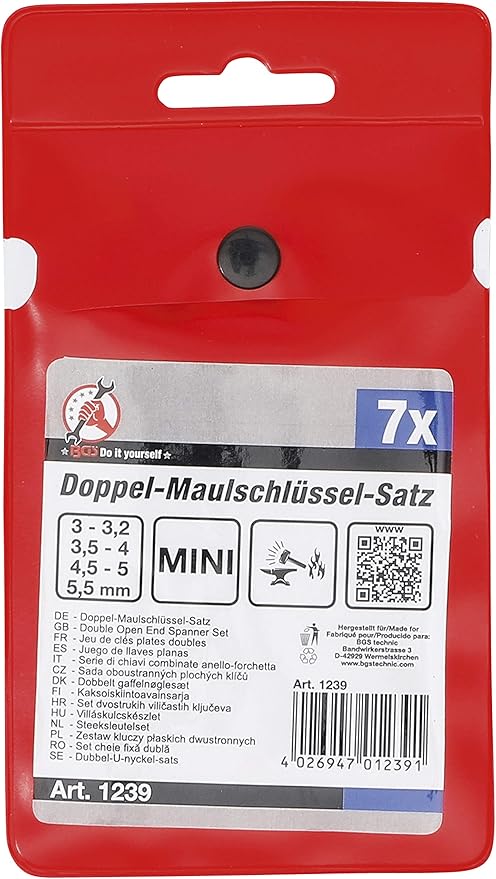 1239 çift ağızlı anahtar-set, Mini tasarım, 3 – 5, mm, 7-parçalı