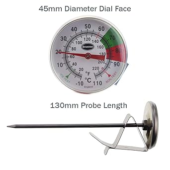 Süt köpürme termometresi, süt sıcaklığının kolay izlenmesi için renk kodlu bölgelere sahip yüksek kaliteli barista termometresi.