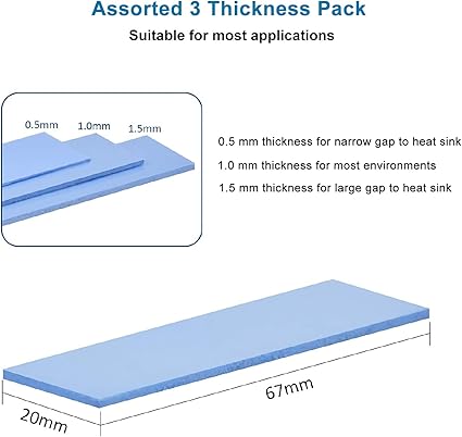 12’li paket çeşitli kalınlık 0,5 1,0 1,5 mm ısı iletken silikon pedler, 6,0 W/mk ısı iletkenliği, Soft Safe kolay kullanım, SSD-CPU-GPU-LED IC yonga seti soğutma için, mavi