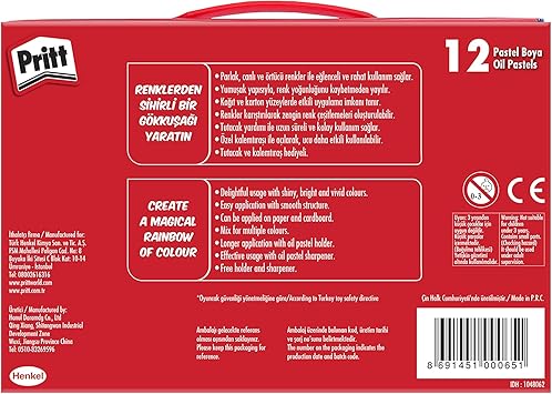 Ambalaj içeriği – Pritt Pastel Boya, canlı, parlak ve örtücü renkleriyle çocuklar için ideal 12 pastel boyadan oluşur. Pakete bir de tutacak eşlik eder!