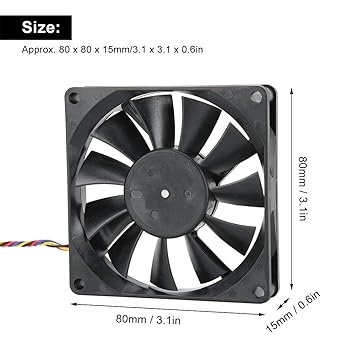 12V 0.50A PWM Soğutma Fanı, 80 mm 5300 rpm Çift Bilyeli Rulmanlı Soğutma Fanı, PWM Sıcaklık Kontrollü Soğutucu PC Kasa/CPU Soğutucu için