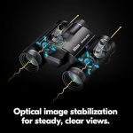 12×25 S Çift Menteşeli Tasarım Çok Katmanlı Lens Kaplamaları, Stabilizasyon Teknolojisi ve Ayarlanabilir Göz Kapağı ile Stabilize Dürbün (Siyah)