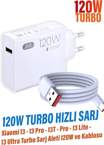 13-13 Pro – 13T – Pro – 13 Lite – 13 Ultra Turbo Şarj Aleti 120W ve Kablosu