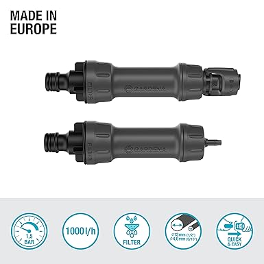 Mikro damlama sisteminin güvenilir başlangıç bloğu: su basıncını 1,5 bar’a düşürür ve böylece boru, damlalık ve nozul gibi tüm bileşenlerin optimum kullanımını garanti eder, ideal sulama: entegre, yüksek hacimli filtre sayesinde kire karşı koruma sağlar ve saatte 1000 litre su akışı sayesinde damla sulama sisteminizi en iyi şekilde kullanabilirsiniz