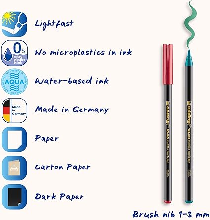Bu fırça uçlu kalemler açık ve koyu renkli kağıt üzerinde, hand lettering, güzel yazı, çizim, eskiz ve tasarımlarda efektler ortaya koymaya yardımcı olur