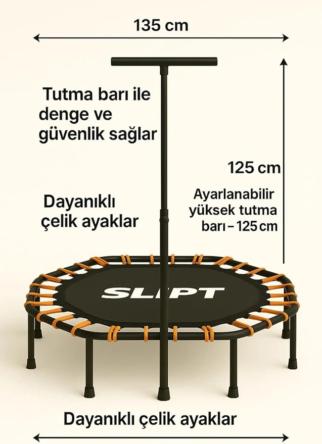 Slipt 135 cm (54 inç) Tutunmalı Step Trambolin – Turuncu, güvenli ve eğlenceli bir egzersiz deneyimi sunan dayanıklı bir trambolin modelidir.