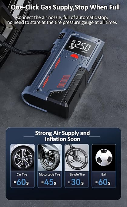 14.8V Lastik Şişirme Araba Acil Güç Takviye Marş Motoru 1000A Tepe 10000mAh Hava Pompası Pil Güçlendirici Cihaz 4.0L’ye kadar Gaz/2.5L Dizel Motorlar Saklama Çantalı Taşınabilir Güç Bankası