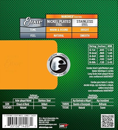 14207 Nanoweb Light Medium 5 Telli Bas Gitar Teli (45-135)