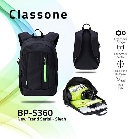Classone New Trend Notebook Sırt Çantası , Siyah Renk
