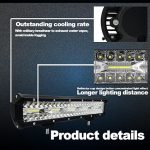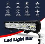 Süper Parlak 38,1 cm Üç Sıra 300 W LED Işıklar, Mükemmel bir görsel etki için çift sıralı 15 derece spot ışığı ile çevrili orta 170 derece projektör ışık verir, Her bir ışık podunda 100 adet 3 Watt yüksek kaliteli LED çipleri vardır, 12000 lümen ve 6000 K beyaz ışık sunar. Çevre dostu düşük güç tüketimi, 50.000 saat olarak değerlendirilmiştir.