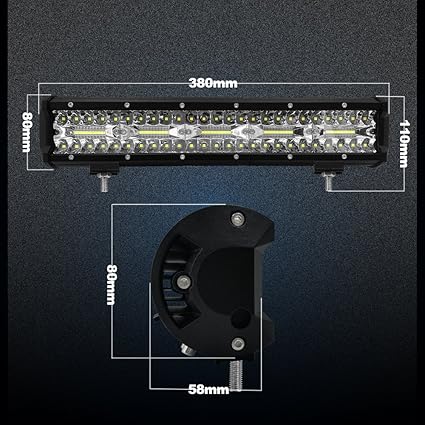 Süper Parlak 38,1 cm Üç Sıra 300 W LED Işıklar, Mükemmel bir görsel etki için çift sıralı 15 derece spot ışığı ile çevrili orta 170 derece projektör ışık verir, Her bir ışık podunda 100 adet 3 Watt yüksek kaliteli LED çipleri vardır, 12000 lümen ve 6000 K beyaz ışık sunar. Çevre dostu düşük güç tüketimi, 50.000 saat olarak değerlendirilmiştir.