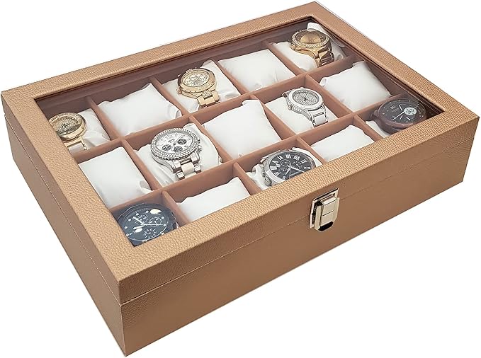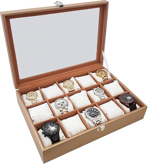 15 li Diamond Gold Deri Ahşap Camlı Saat Kutusu st15-57
