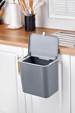 15 Litre Fonksiyonel Kapaklı Banyo Ve Mutfak Tezgahüstü Çöp Kovası Dolap Ve Duvar Aparatlı 15 Lt.,Yerden Tasarruflu Lavabo Altı Veya Dolap Kapısı Için Kapasiteli Mutfak Çöp Kovası,Askılı (GRİ)