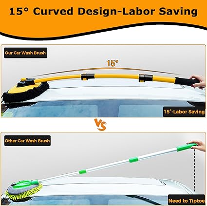 15° bükülebilir, 100 cm (103 inç) fırçalı teleskopik çubuk】: Araba yıkama fırçamız, araç yıkamanızı zahmetsiz hale getiren ergonomik 15° çekilebilir bir çubuk ile donatılmıştır. Yükseklik gereksinimi azalır, bu da çatıların ve diğer zor temizlenen yüksekliklerin temizlenmesini bir araç temizleme fırçasıyla kolaylaştırır. 43 inç üç kat çekilebilir 22 inç / 59 cm, 33 inç / 85 cm ve 43 inç / 110 cm (43 inç) / 110 cm (43 inç) üç kat geri çekilebilir bölümler, sırtınızı zorlamadan ve ıslanmadan farklı yüksekliklerde yıkamanızı