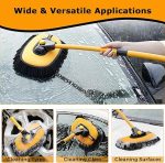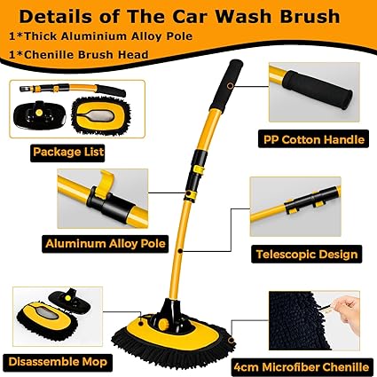 90° döner ve kolayca çıkarılabilir teleskopik yıkama fırçası】: Bu yıkama fırçasını 90° döner kilitli teleskopik saplı yerden farklı açıları temizler, böylece her şeyi yapmak için esnemek, eğilmeniz veya döndürmeniz gerekmez. Kullanılmadığında saplı araç yıkama paspası demonte edilebilir ve herhangi bir yere yerleştirilebilir.
