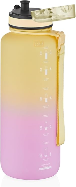 1500ml Çift Renkli Sızdırmaz BPA İçermez Kilitlenebilir Kapaklı Motivasyonel Tritan Su Matarası (Sarı-Lila)