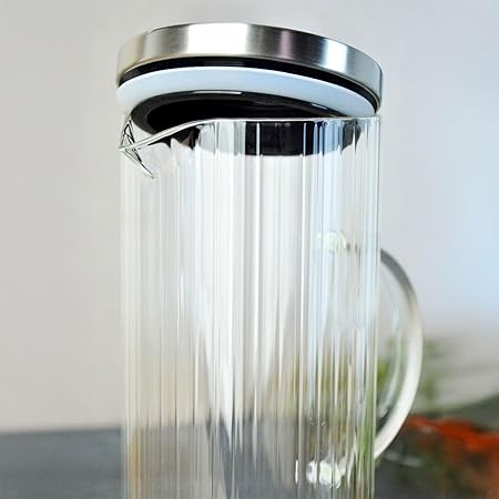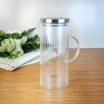 1500ml Metal Kapaklı Line Borosilikat Cam Yağlık & Sürahi – Şık, Dayanıklı ve Sağlıklı Saklama Çözümü (9cm x 23cm)