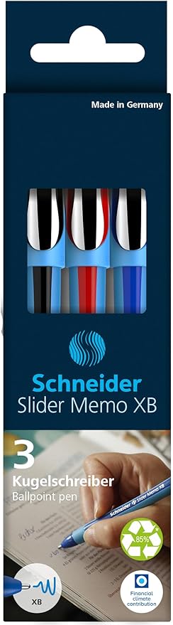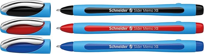 150293 Slider Memo XB tükenmez kalem (kapaklı, çizgi kalınlığı: XB, yazı rengi: kırmızı/siyah/mavi, Almanya’da üretilmiştir) 3’lü kılıf