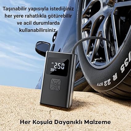 150PSİ Dijital Ekranlı Taşınabilir Şarjlı Hava Kompresörü – Araç, Motosiklet, Bisiklet Pompası