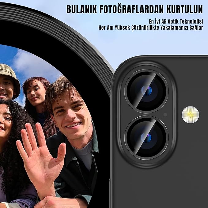16/16 Plus için Kamera Koruyucu Alüminyum Alaşım Çerçeveli Tempered Glass iPhone Kamera Lens Koruyucu (SİYAH)