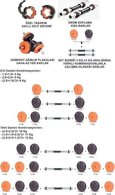 16 Kg Dambıl Seti Turuncu-siyah 6 In 1 Fitness Set