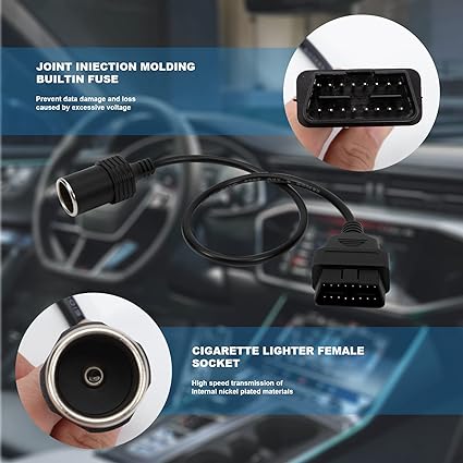 16 Pin OBD2 çakmak dişi soket adaptörü konnektörü 18AWG güç kaynağı kablosu