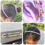 Boyutlar: plastik boncuklar – 6 * 9 mm, kare harf boncuklar – 6 * 6 mm, oblate harf boncuklar – 4 * 7 mm, elastik iplik çapı 0,8 mm ve uzunluğu 10 metredir.