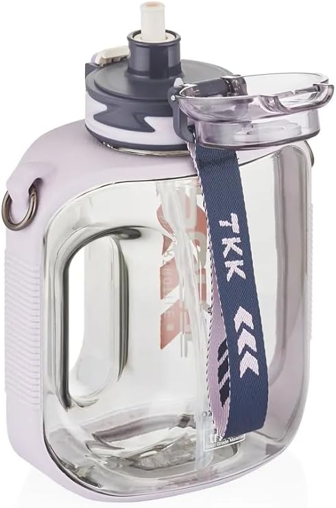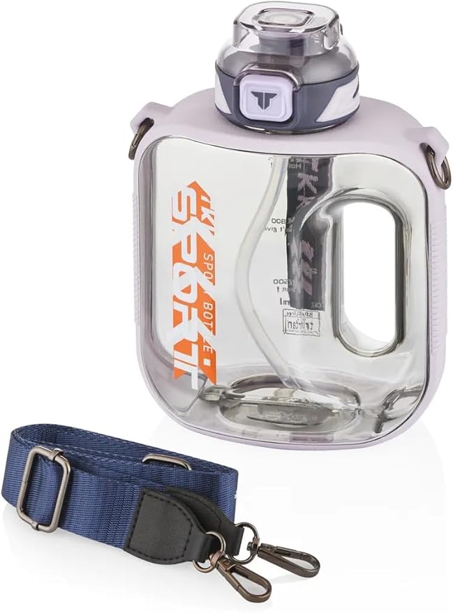 1600ml Pipetli/Pipetsiz Kullanıma Uygun Taşıma Askılı Sızdırmaz Tritan Sport Matara (Mor)