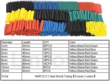 164 Parça Isıyla Daralan Makaron Seti – Renkli ve Farklı Çaplarda Isıyla Büzüşen Kablo Koruma Kılıfı, Elektrik Yalıtım Makaron Kiti, Su Geçirmez, Alev Geciktirici, Kablo Onarım ve İzolasyon