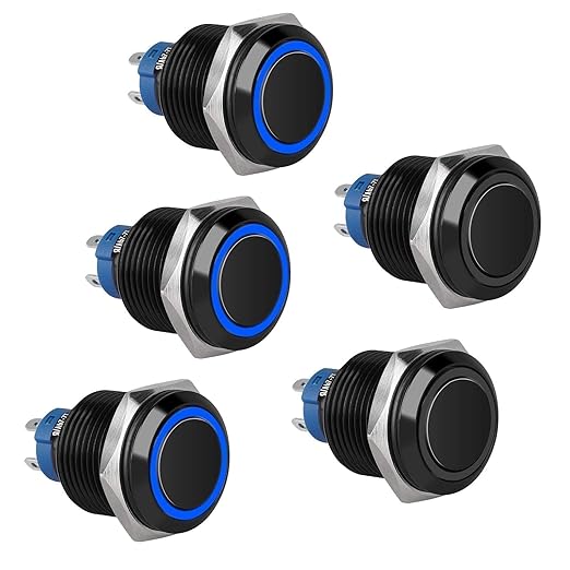 16mm Basmalı Düğme Anahtarı, 12V 5A Mandallı Basmalı Düğme Araba için LED Işıklı Kendinden Kilitlemeli AÇMA/KAPAMA Anahtarı, 5 Paket