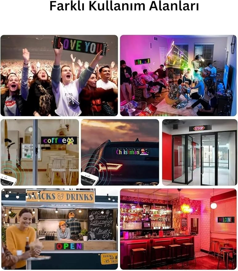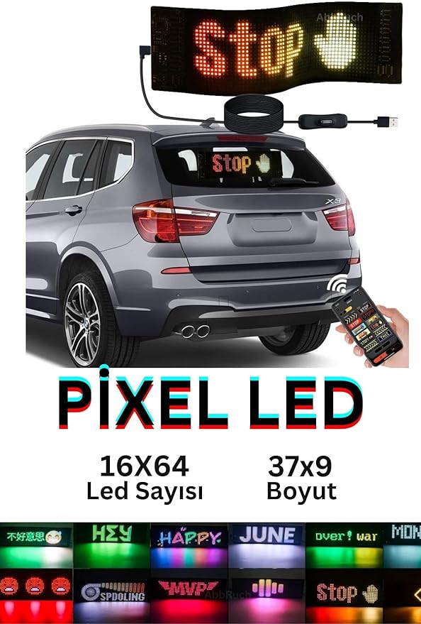 16×64 Araç Led Kayan Yazı Emoji Matrix Panel Kişiselleştirilebilir Telefon App Kontrollü Kumandalı