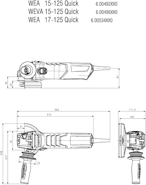 1700 W açılı taşlama makinası WEV 17 – 125 Quick, 1 adet, 600516000