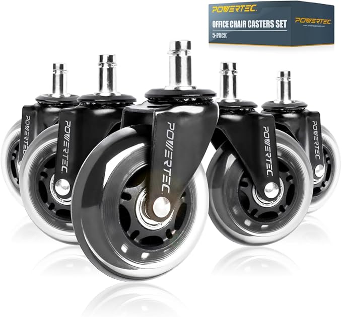 17101 Ofis Koltuğu Tekerleri Tekerleri 5’li Set | 7,62 cm (7,62 cm) Sert Ahşap Zeminler için Dayanıklı Poliüretan Teker, Güvenli Değiştirme