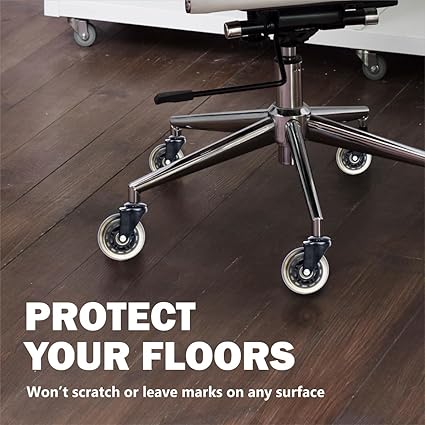 FONKSİYON: Tekerlekli ofis koltuğunuzu bu pürüzsüz, sessiz ve dayanıklı tekerlekli tekerleklerle yükseltin. Tüm zeminler için güvenlidir, poliüretan teker tekerleklerimiz parke ahşap, halı, fayans, laminat, vinil ve daha fazlası dahil olmak üzere hiçbir yüzeyde çizilmez veya iz bırakmaz