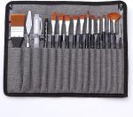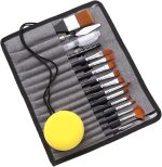 18 adet boya fırçası seti 12 çeşit boya fırçası, 1 kazıyıcı, 1 sarı sünger top, 1 2B kurşun kalem, 1 Suluboya fırçası kalem ve kanvas saklama çantası ile birlikte gelir.
