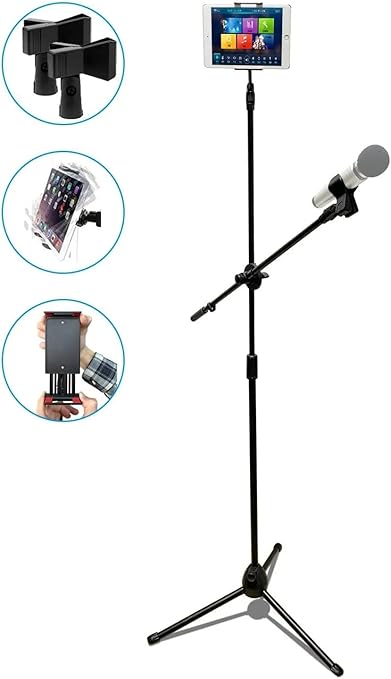 190cm Maksimum Uzunluk Mikrofon Standı Multi Fonksiyonel 2in1 Mikrofon ve Tablet Stand Katlanabilir Açısı Ayarlanabilir Zemin Üstü – Canlı müzik Mikrofon telefon stand 103SP