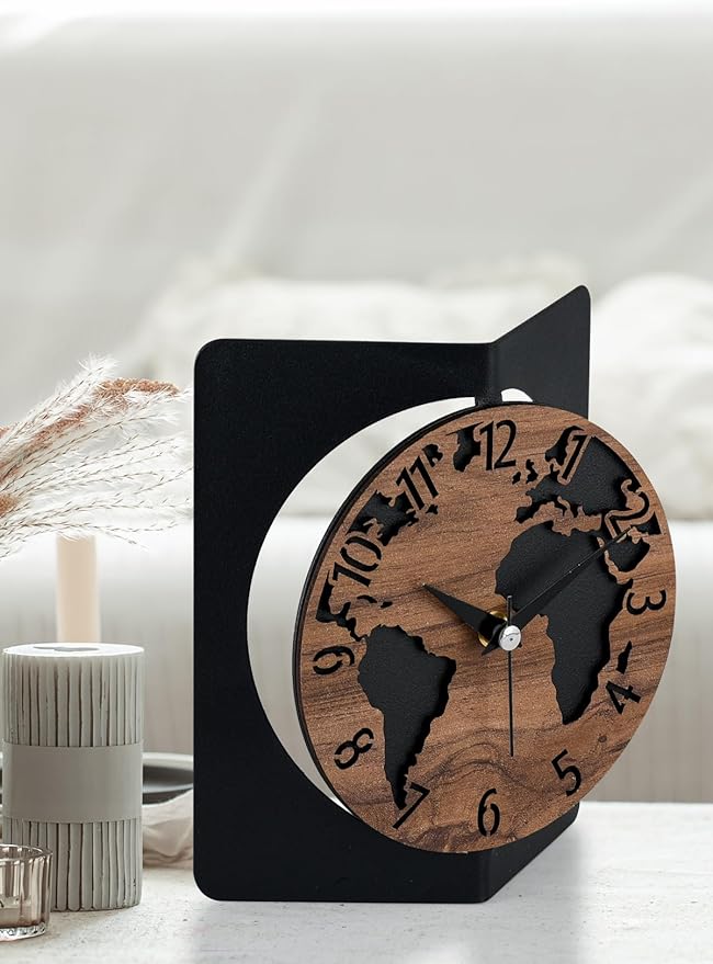 19X15 cm Metal Ahşap Dekoratif Masa Üstü Saati
