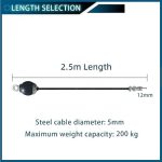 1m/2m/2,5 m/3 m/3,5 m/4m/5m/6m Spor Salonu Tel Halat Yüksek Performanslı Çelik Abirerope Ev Kablo Makinesi için Kalınlık 5 mm – Halat Fitness Kasnak Aksesuarı (Renk: 2,5 m)