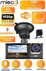 1s Wifi/1920p Fhd/170° Ultra Geniş Açı/gece Görüşü Ve G-sensörü/ 3 Kameralı Araç Kamerası (2025)